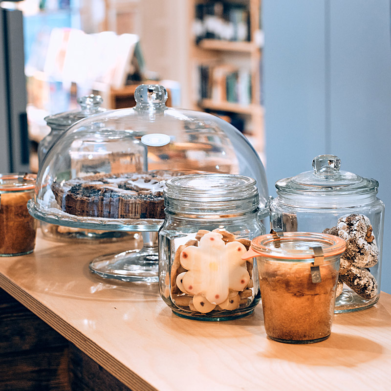 Komm im Laden vorbei und geniesse feinen Kaffee, Tee sowie selbst gemachten Kuchen und Gebäck.